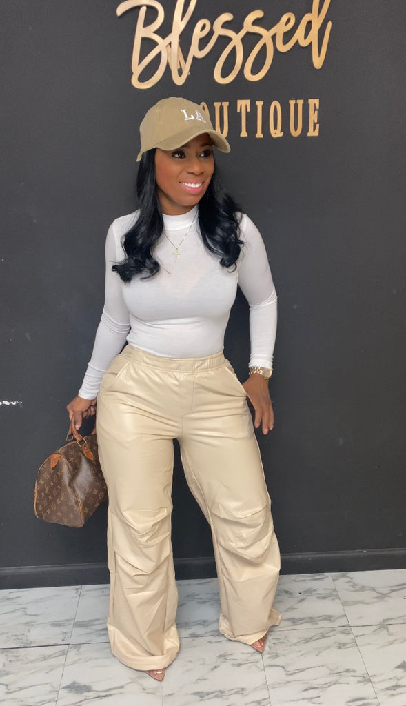 Leather Wide Leg Pants ONLY CREAM